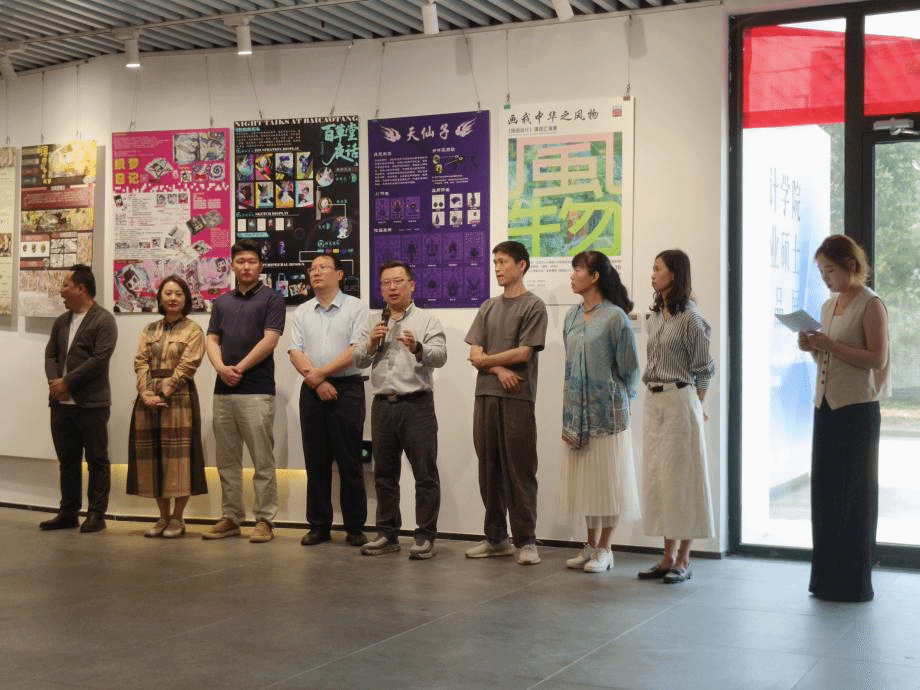 开幕式上,教务处张海鹍副处长率先为展览开场致辞。他对此次展览给予了高度肯定,强调了课程教学中理论与实践结合的重要性,尤其赞扬了课程通过人工智能辅助创作,将传统文化内涵以插画形式生动呈现的创新模式。