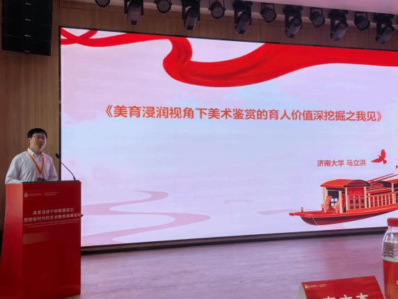 会上,杨海波做了《中华美育 无界创新 新时代高校美育模式与实践路径》的主题报告,马立洪做了《美育浸润视野下美术鉴赏育人价值深挖掘之所见》的主题报告,报告将澳门网投官网美育教育工作发展历程,典型经验、教学和学术研究成果与与会专家、学者进行了分享和交流,取得了良好的效果。