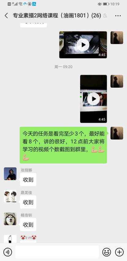 3.每次上课前来点评学生上传到微信群的作业,上交作业要求学生用录视频和拍照片的方式,录视频的同时需要说出自己作业出现哪些亮点和不足之处,这样可以全方位的了解学生的课堂掌握情况,从而进行个人指导。