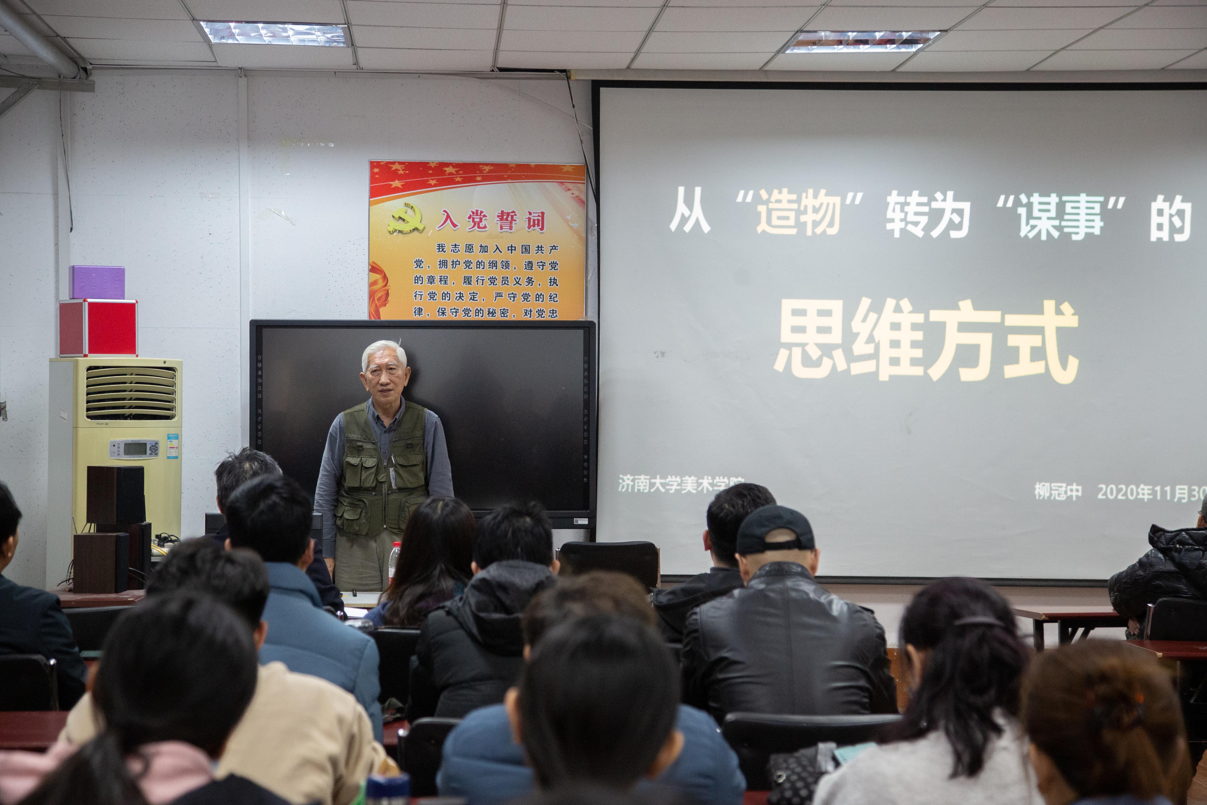 会上郝军书记首先介绍了新入职的老师和近期学院工作取得的成果。随后,柳冠中教授作了主题为《从“造物”转为“谋事”的思维方式》的讲座。