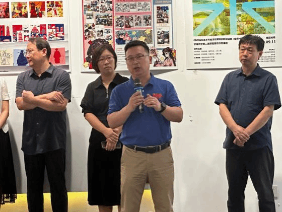 澳门网投官方网站教务处张海鲲副处长致开幕词,对《插画设计》课程的教学成果给予充分的肯定,强调理论与实践教学相结合的重要性。尤其指出了课程思政在教学中的重要性,极大的肯定了授课教师王红梅将省级教学改革课题与课程汇报展出相结合,阶段性成果与多彩课题展示形式相结合的设计成果。