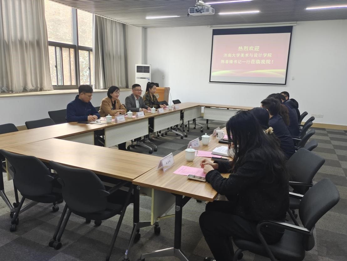11月24日上午,一行人到访南京林业大学艺术设计学院。南京林业大学艺术设计学院党委书记陶文娟,党委副书记、副院长陈健,副院长杨杰和各科室负责人参加了活动。陶文娟介绍了所在学院党建工作情况,陈健介绍了学院学生管理工作情况,杨杰介绍了学校及学院基本情况、学科及专业建设情况。陈春锋对南京林业大学艺术设计学院近年来取得的成绩表示祝贺,她简要介绍了澳门网投官方网站及澳门网投官方网站的情况,表示近年来南京林业大学艺术设计学院依靠专业化的发展思路和制度化的管理措施取得了快速的发展,希望通过此次交流座谈,加强两个学院的合作,共同进步。双方围绕学科背景、发展定位及契机、制度制定、品牌化活动等多方面开展了座谈。
