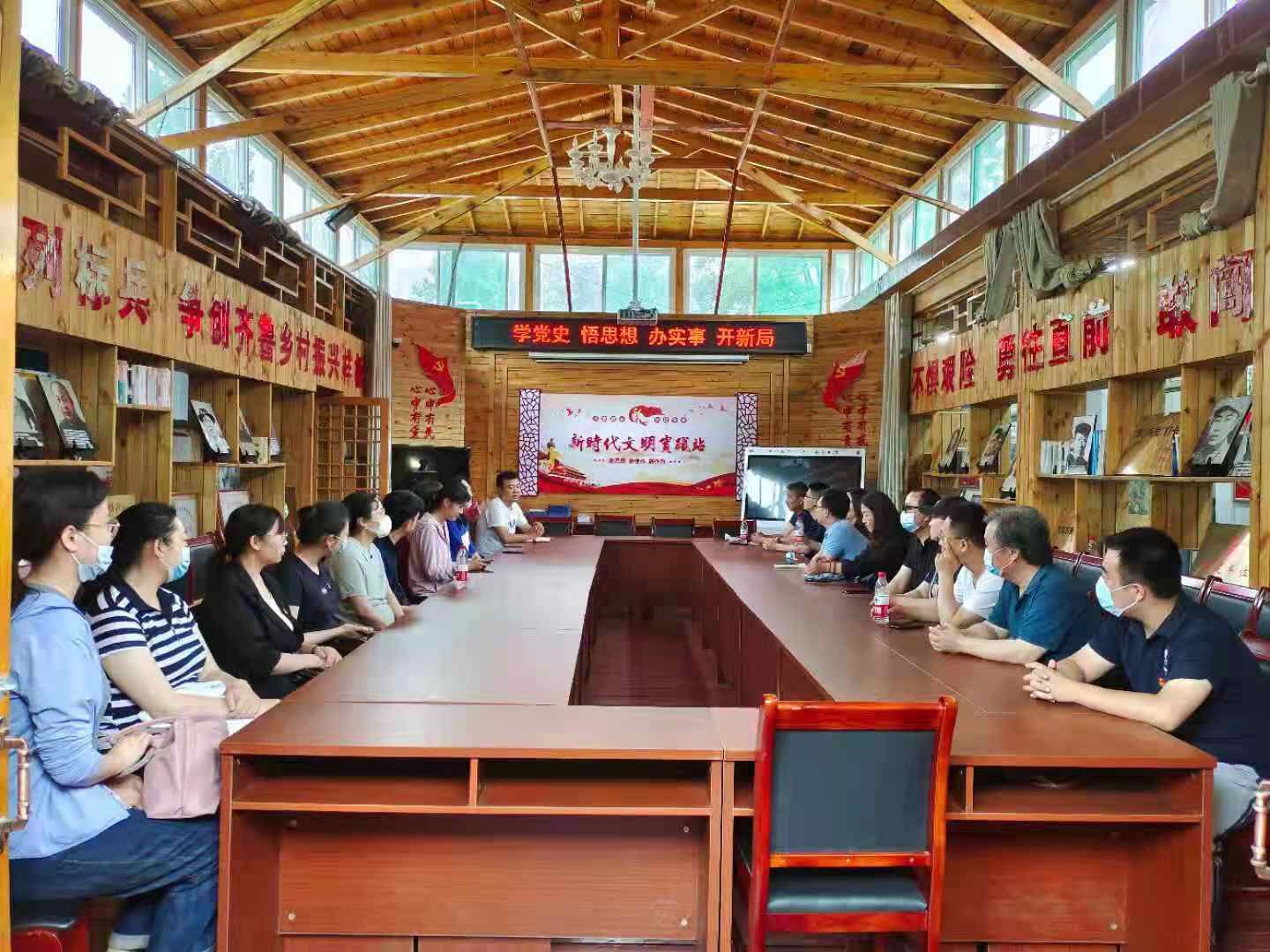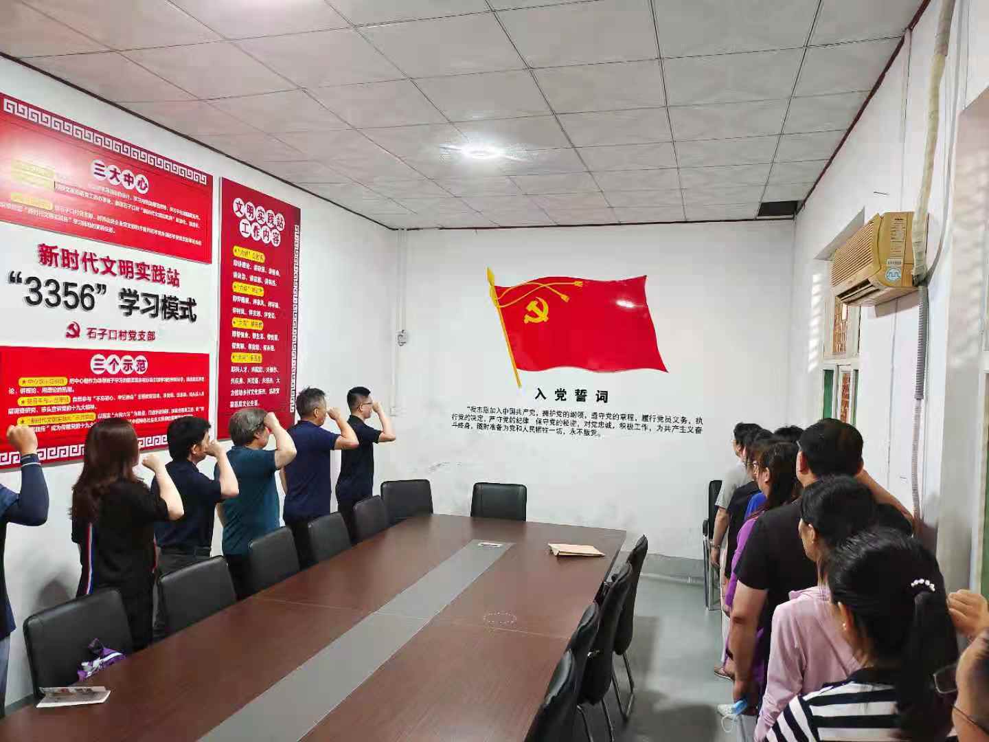 在党建活动室,在场教工党员佩戴党徽,举起右拳,重温入党誓词,决心为中国特色社会主义伟大事业不懈奋斗。大家参观了石子口村的建设和民宿,感受美丽乡村的独特魅力。参观后,一行人赶赴刘德功黑陶博物馆,体验龙山文化的悠久历史和文化内涵。