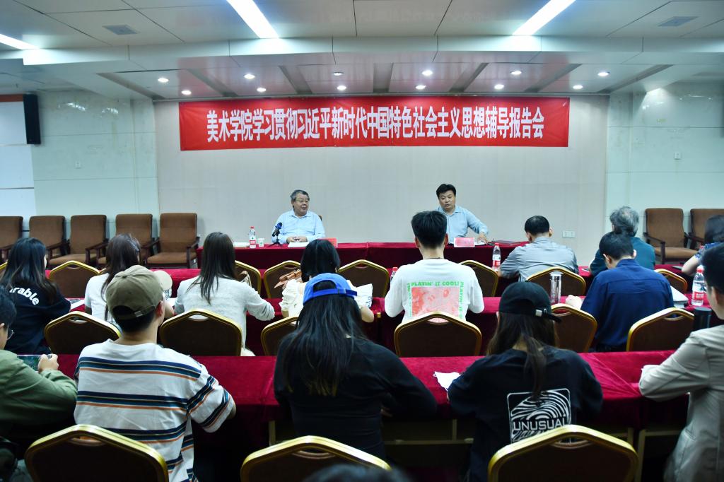 5月16日,美术学院举办学习贯彻习近平新时代中国特色社会主义思想主题教育辅导报告,邀请包心鉴教授作题为《习近平新时代中国特色社会主义思想的理论体系及其根本立场和科学方法》的专题辅导。美术学院党委领导班子和党员师生100余人参加了本次活动。报告会由美术学院党委书记孙成豪主持。