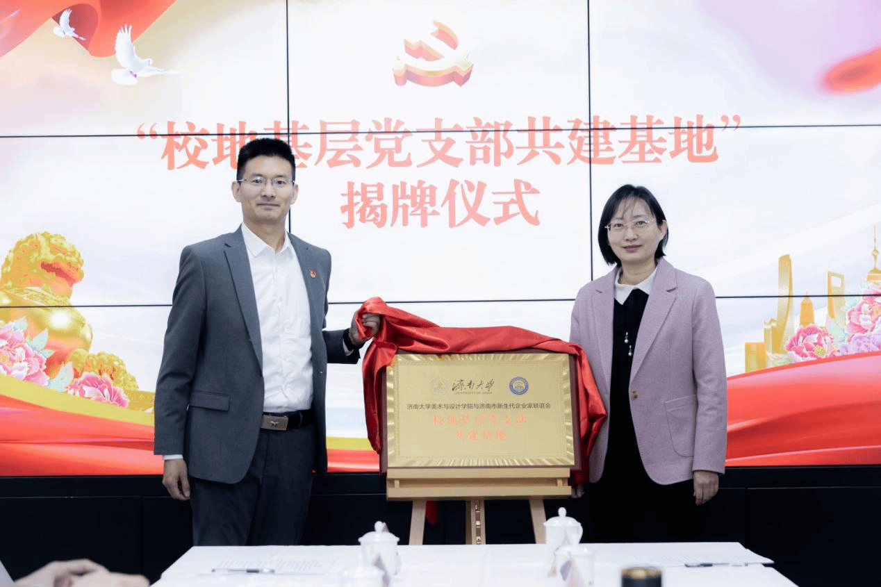 活动伊始,学院党委书记陈春锋与济南市新生代企业家联谊会党支部书记共同签署共建合作协议,为“党建共建基地”揭牌,分别进行致辞。
