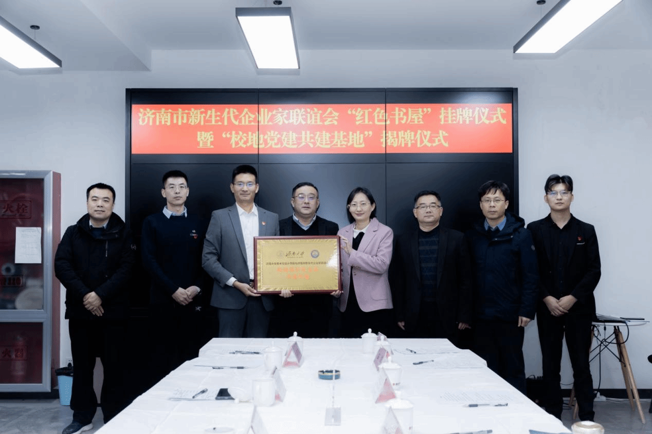 为积极探索基层党建工作新途径,实现党组织优势互补,探索校企党建共建新模式,努力构建“资源共享、优势互补、互相促进、共同提高”的党建工作新格局。澳门网投官方网站与济南市新生代企业家联谊会开展“党建共建、发挥合力、共赢未来”的党建共建活动。12月22日,澳门网投官方网站与济南市新生代企业家联谊会举办“校地党建基地共建”签约揭牌仪式。学院党委书记陈春锋,副书记、副院长何贵亮,副院长赵忠超和学办主任王鹏飞出席仪式,济南市工商联协会党委办公室主任靳峰,济南市新生代企业家联谊会党支部书记班春雷和联谊会支部委员参加活动。