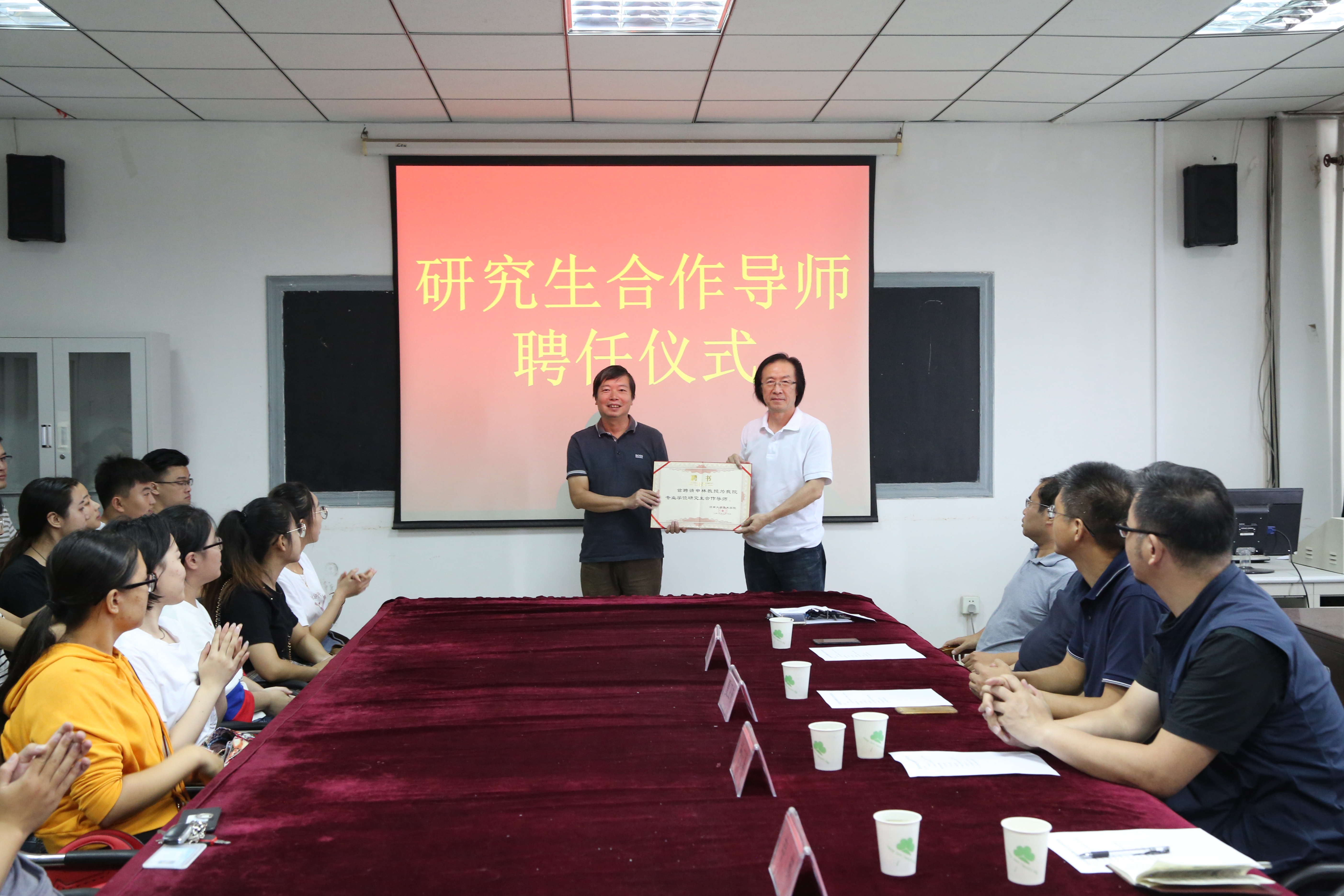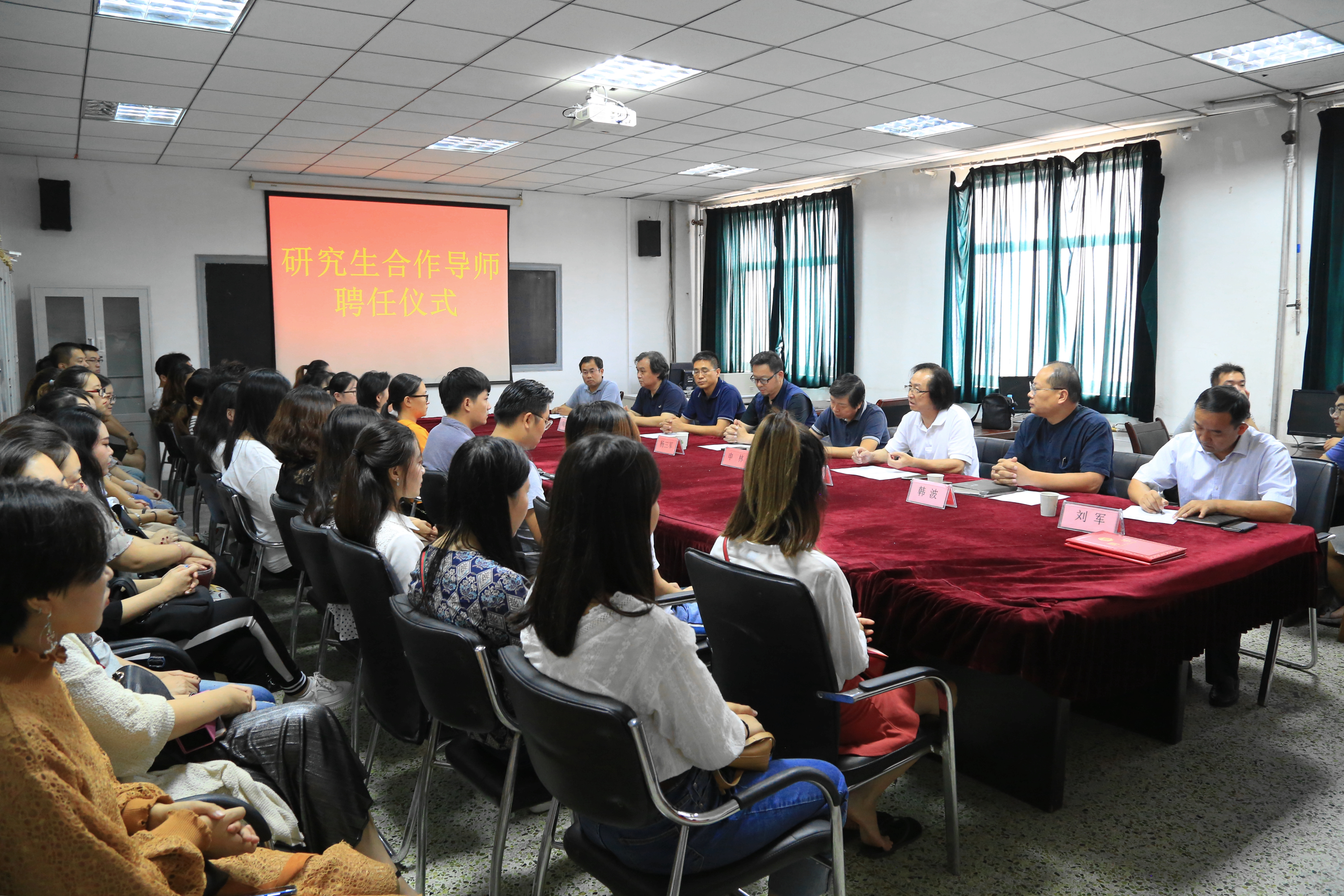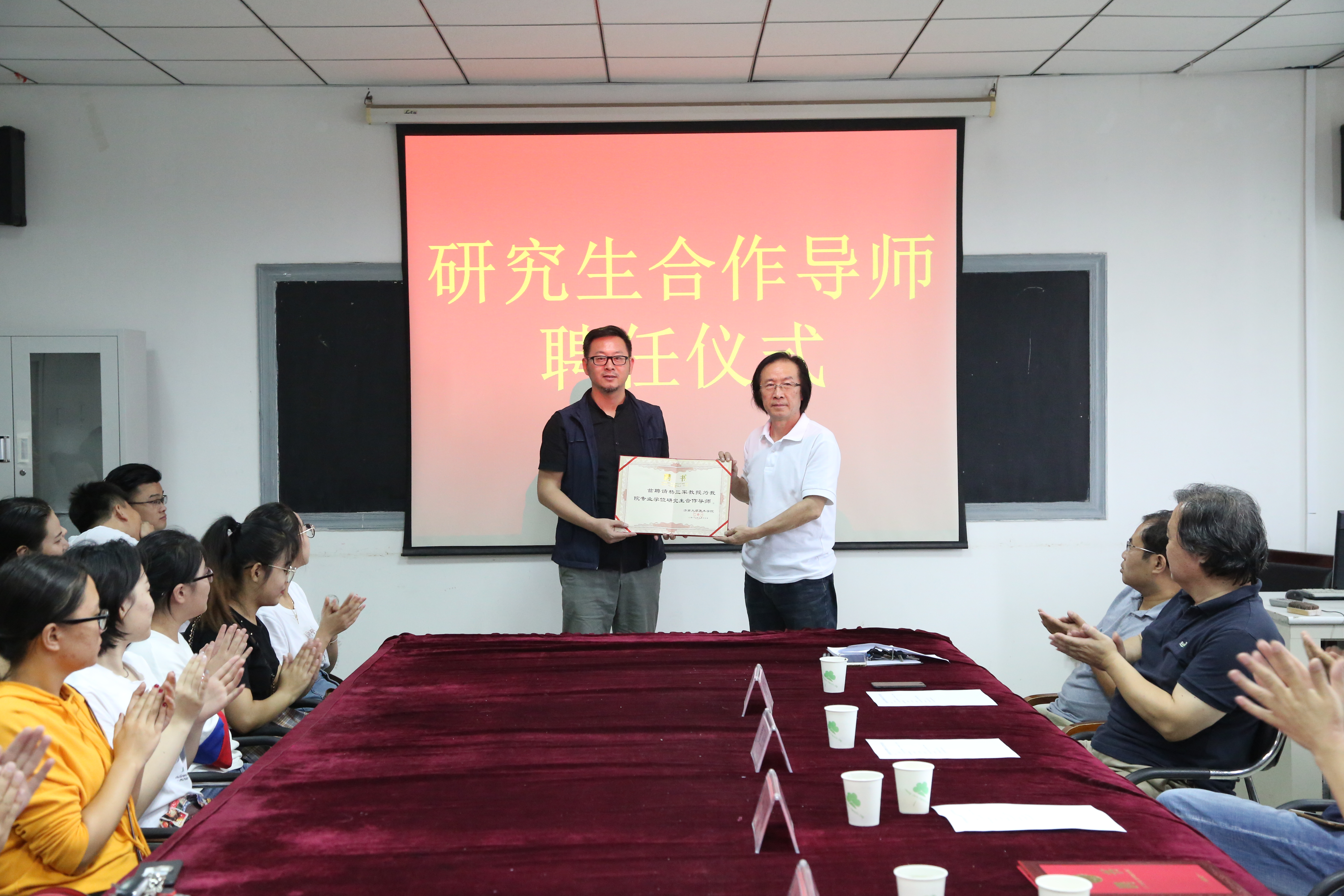 9月14日上午,美术学院在美术系会议室举行合作导师聘任仪式及研究生交流会。来自山东女子学院的申林教授、齐鲁师范学院杨三军教授受聘为澳门网投官网美术专业学位研究生合作导师。会议首先由刘雷院长介绍了两位教授的学术情况及美术学院近年发展概况。随后,夏卫东书记、刘军书记、陶国平副院长分别致欢迎词。韩波副院长介绍了澳门网投官网学科、科研和研究生教育的具体情况。到会研究生50余人,大家对两位教授助力美术学院感到十分高兴。聘任仪式结束后,澳门网投官网研究生就学习和研究上遇到的困惑向两位教授求教,两位教授结合自身的求学和研究的体会给到场的研究生做了鲜活生动的解释。