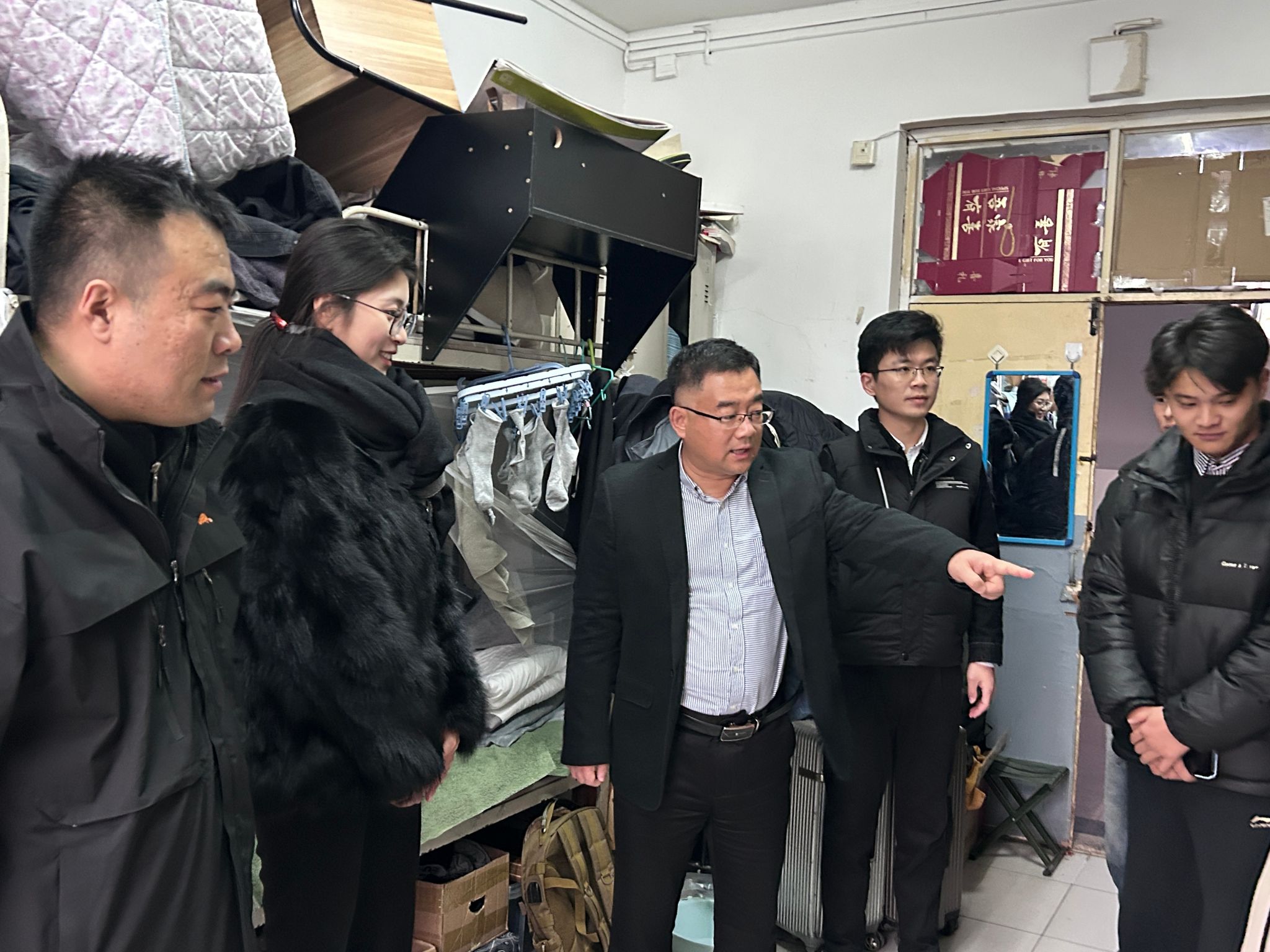 院领导与老师们来到学生宿舍后,首先与同学们进行了亲切交流,充分了解了同学们近期的学习状态、生活情况与发展规划,提醒应届毕业生们要做好充分的就业准备,鼓励同学们积极主动地向毕业生汲取相关经验。接着嘱咐同学们要时刻提高安全防范意识,排查了宿舍存在的一些安全隐患问题并提出整改意见,强调学生要严格遵守学校各项纪律,注意用水用电安全,谨防网络诈骗、注重人身财产安全。