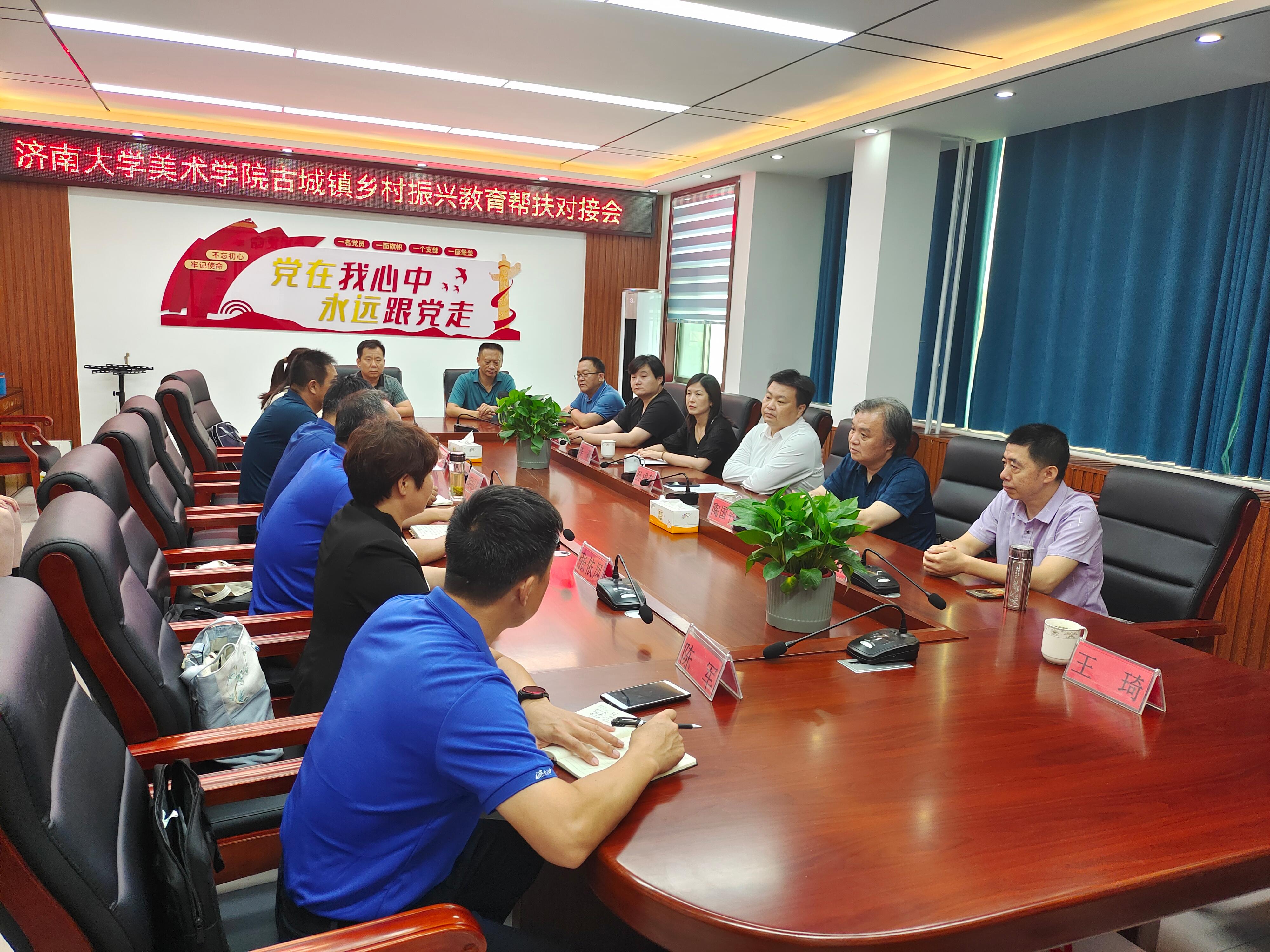 6月28日,美术学院到澳门网投官方网站省派第一书记服务地聊城莘县古城镇开展乡村振兴教育帮扶对接活动,莘县教体局党组成员胡绍东、古城镇党委书记丁伟华、澳门网投官方网站省派第一书记徐兵、陈军、张依凤、赵萍及相应主管部门科长、镇中小学校校长出席了活动。美术学院党委书记孙成豪、常务副院长陶国平、党委副书记、副院长李莉、系主任陈炜、团委书记张虎、辅导员王琦及10名学生参加了活动。座谈会由澳门网投官方网站省派第一书记徐兵主持。