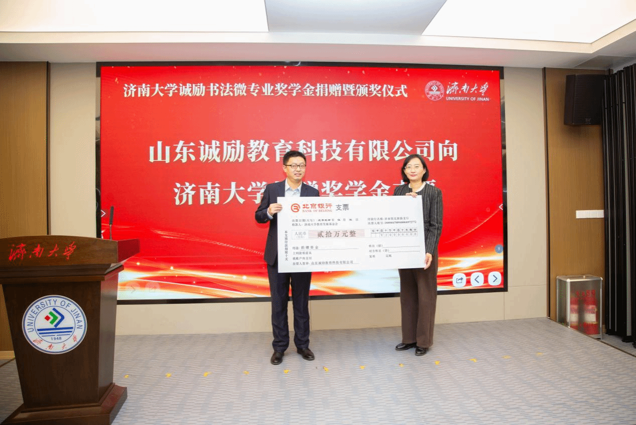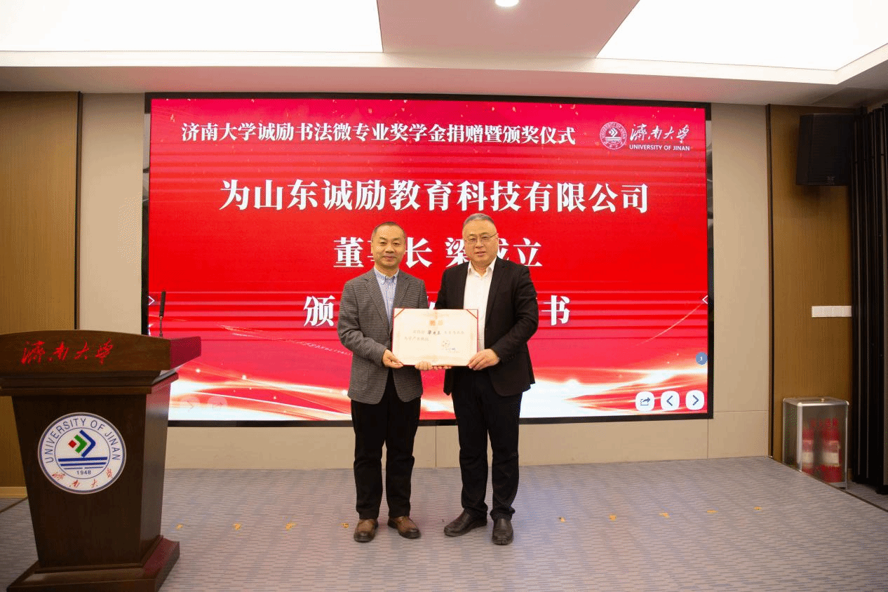 山东诚励教育科技有限公司捐赠二十万元设立澳门网投官方网站诚励书法微专业奖学金,旨在推动澳门网投官方网站书法微专业建设。其旗下诚励书画教育品牌,创立于2003年。它是经教育部门核准的大型综合书画教育连锁培训机构。现有一百余位专职教师,在济南有十四所直属校区,常年在校生一万余人,业务涵盖少儿书法培训、少儿美术培训、书画教材出版等领域。