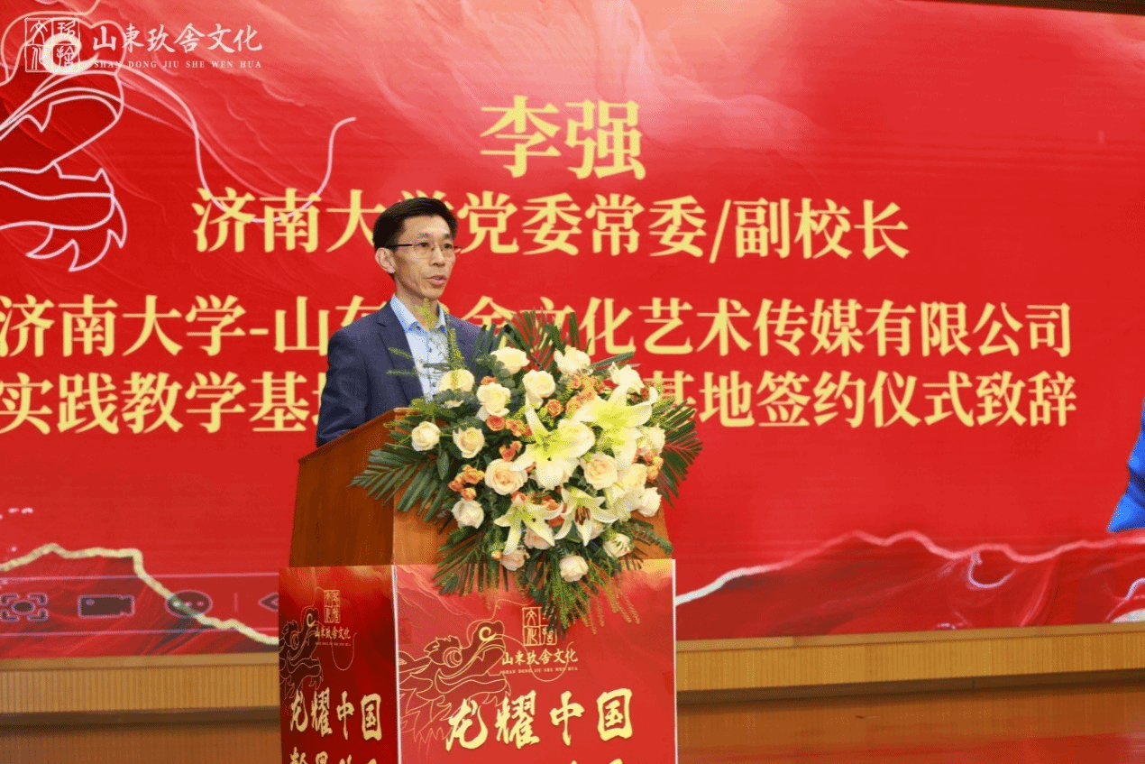 李强代表学校对山东玖舍文化艺术传媒有限公司支持学校教育发展表示感谢,介绍了学校在人才培养、科学研究、师资队伍、学科建设等方面的基本情况。他指出,共同搭建校企联合平台,开展深入合作,是推动澳门网投官方网站与山东玖舍文化艺术传媒有限公司发挥各自资源优势、提升企业创新能力和水平、提高学校人才培养能力、实现互利共赢的有益尝试。澳门网投官方网站近年来高度重视美育工作,不断探索新形势下美术专业学生培养模式,希望校企双方进一步加强密切交流,深化拓展合作领域,实现更加紧密的产学研一体化发展,用更加开放的视野、更加有力的措施共同推进协议全面落实。