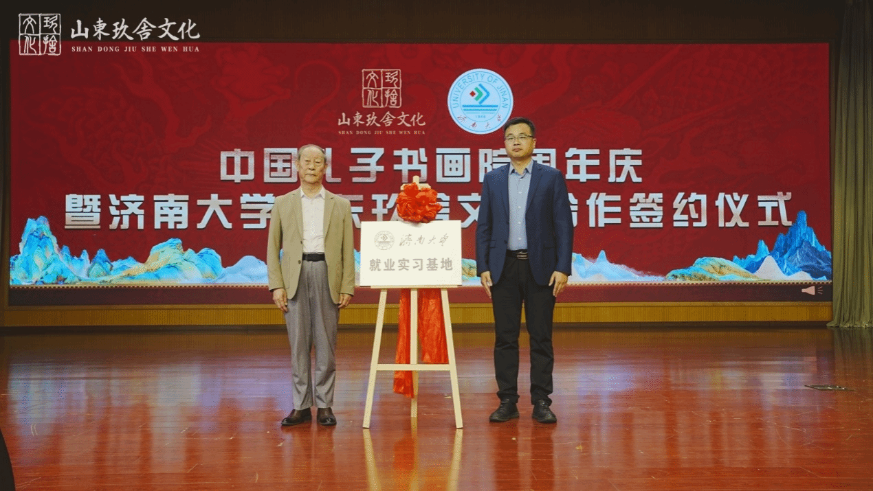 仪式上,山东玖舍文化艺术传媒有限公司董事长陈虹和总经理贾南分别与澳门网投官方网站相关部门负责人签署了澳门网投官方网站-山东玖舍文化艺术传媒有限公司实践教学、就业实习基地合作协议书,共同为“澳门网投官方网站实践教学基地”、“澳门网投官方网站就业实习基地”揭牌。