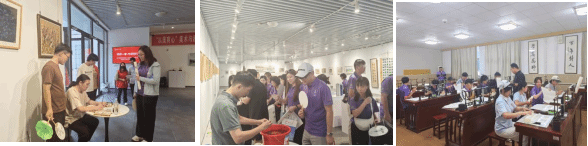 活动现场,美术系王小飞老师现场展示了中国传统水墨画团扇的绘制技艺,丁奕翔老师则带来了精心设计的漆面扇体验项目,书法系成海明博士指导台湾青年学生体验中国传统书法艺术,两岸师生在书写“两岸一家、与你同行”的主题作品中,深刻感受到了两岸同根同源的历史文化内涵。