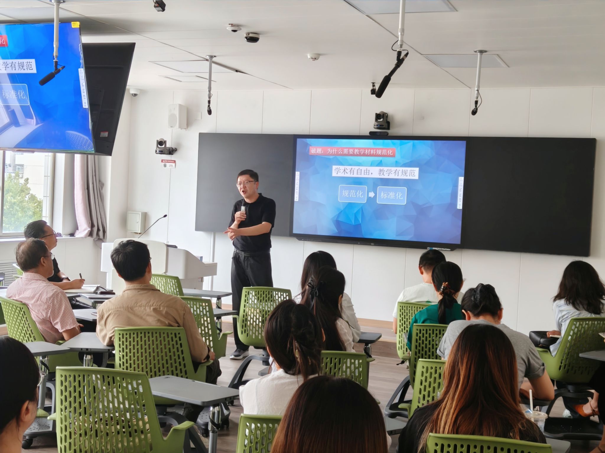 宋磊教授以丰富的教学管理经验与扎实的学术研究为支撑,旁征博引、逻辑清晰地梳理了教学材料规范化的核心要求、常见问题,结合大量高校教学督导实例、优质教学材料范本及教育领域前沿研究成果,深入浅出地讲解了教学大纲修订、教案设计、课件制作、作业批改记录等关键教学材料的规范要点,提升课堂教学质量的实践方法。大家围绕“艺术类课程教学材料如何兼顾规范性与创作性”“跨学科教学中材料整合的难点突破”“教学材料与教学评价的衔接”“数字化教学材料的规范标准”等与宋教授进行了深入的探讨。