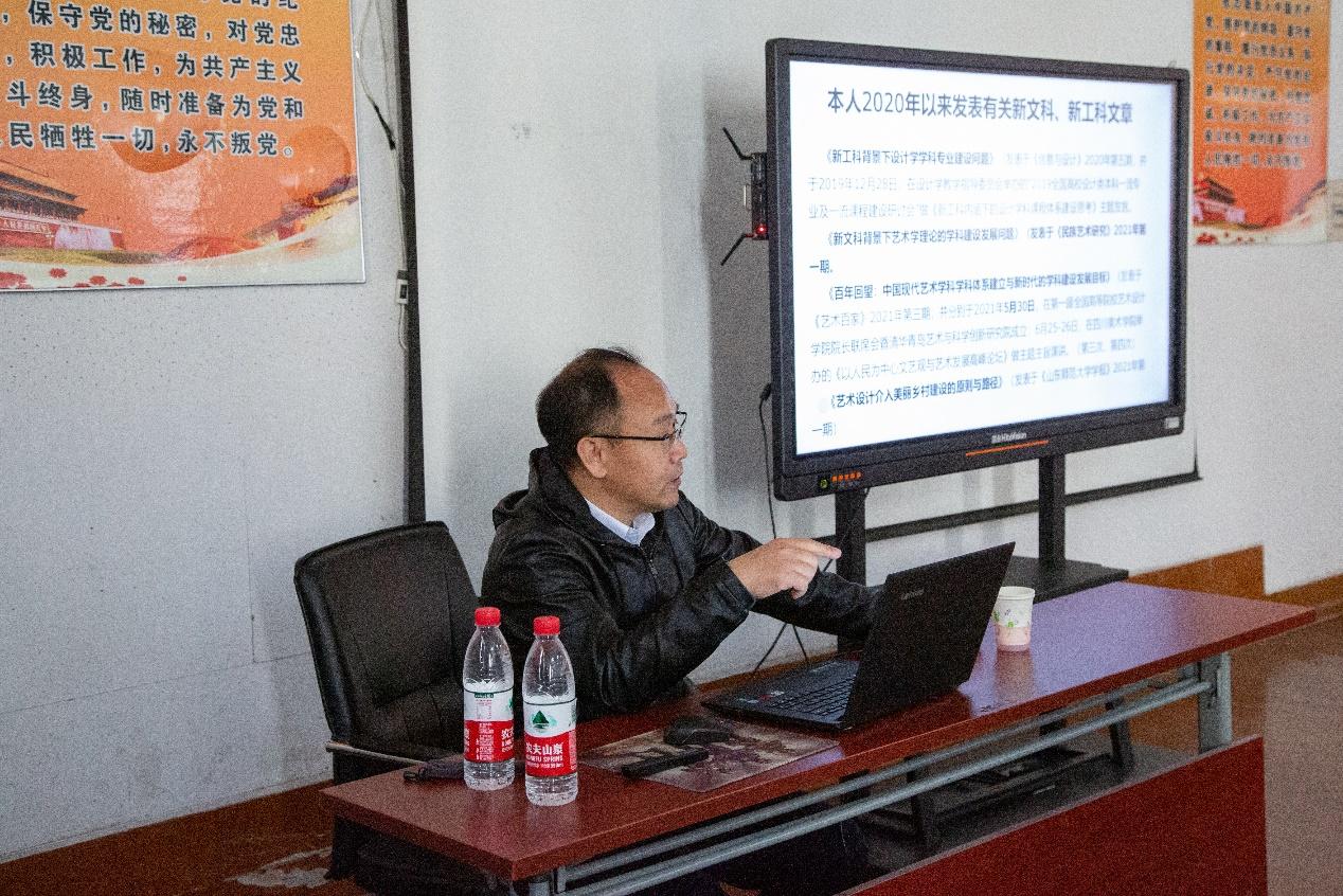 在新时代中国特色社会主义的伟大实践中,在服务“文化强国”、“乡村振兴”、“中国制造2025”、“工业4.0”、“互联网+”及“振兴乡村传统工艺”等重大国家发展战略,艺术学将发挥更大的作用。10月18日下午,“济大论坛——百年中国艺术学科发展与新时代使命”主题讲座在澳门网投官网会议室顺利举行。特邀请山东工艺美术学院副院长董占军教授做主题讲座,澳门网投官方网站书记郝军、副院长赵忠超及教师、研究生共同参加了此次讲座。