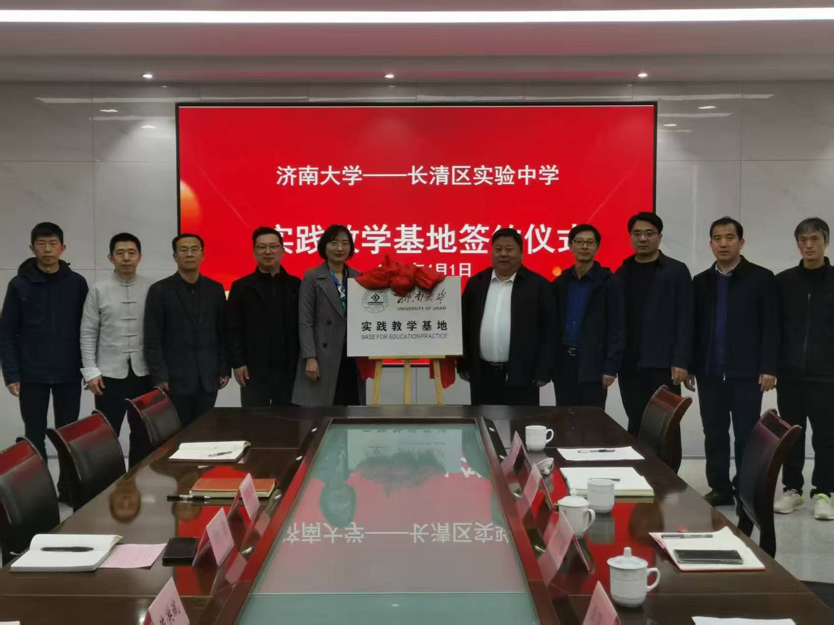 在双方共同见证下,进行了“澳门网投官方网站实践教学基地”揭牌以及《澳门网投官方网站本科实践教学基地建设协议书》签署仪式,并为长清实验中学的优秀校友代表、优秀教师代表薛平峰和杨怀镇两位老师颁发“校外优秀教育实习指导教师”证书。
